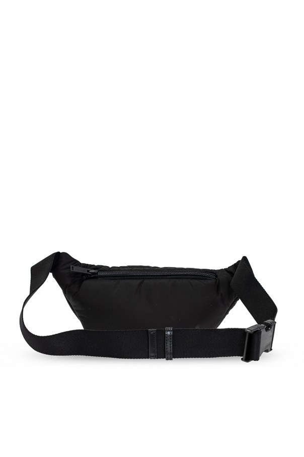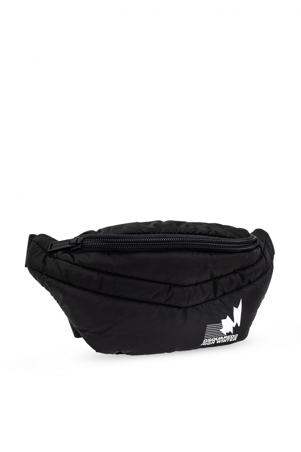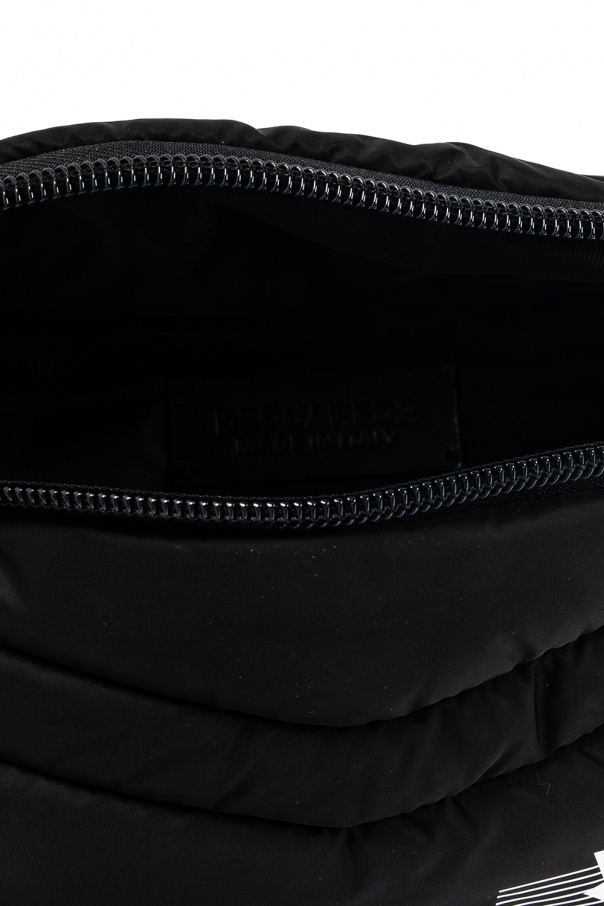 Black belt bag from Dsquared2. Fastened with a zip, this design features a white logo pattern, back zip pocket, adjustable strap and one internal compartment.