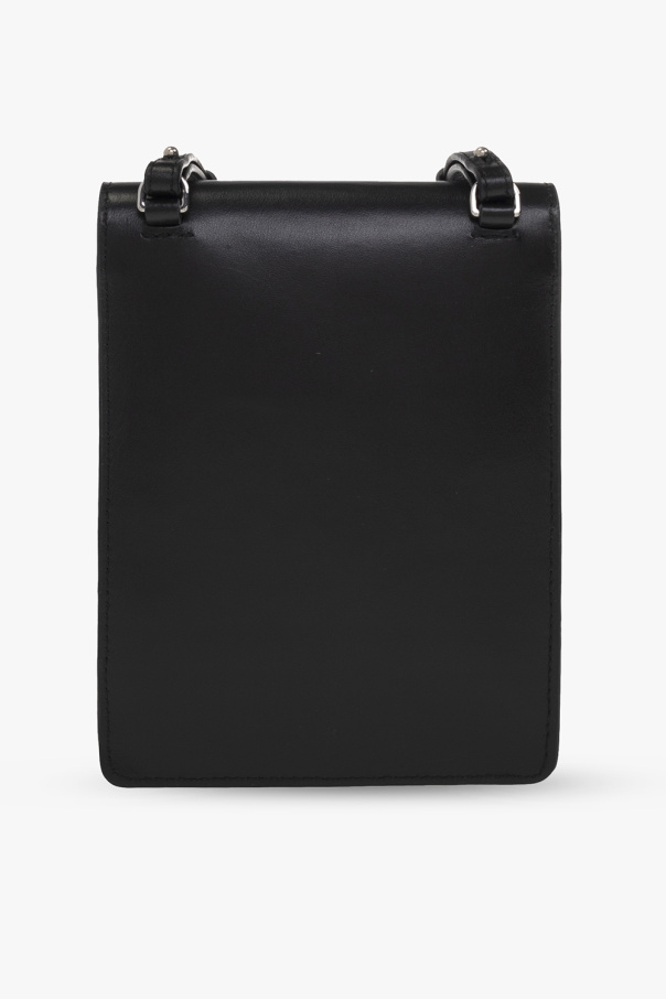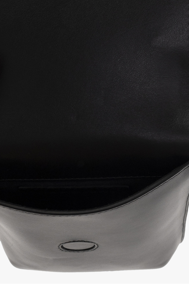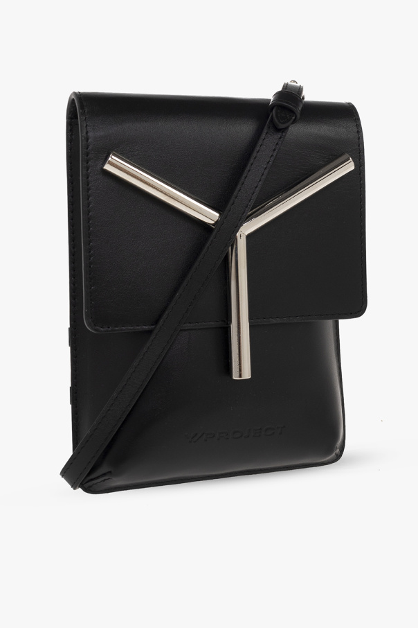 Black shoulder bag from Y/Project. Made of faux leather, this model features a magnetic snap, logo detail, detachable and adjustable shoulder strap, one internal compartment and silver-tone metal hardware.
