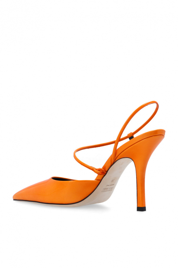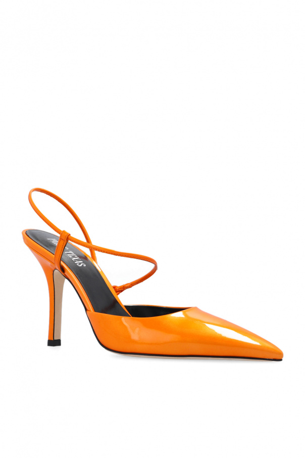 Orange ‘Anita’ pumps from Paris Texas. Crafted from patent leather, this model features a pointed toe silhouette, a distinctive ankle strap and a cream leather sole.