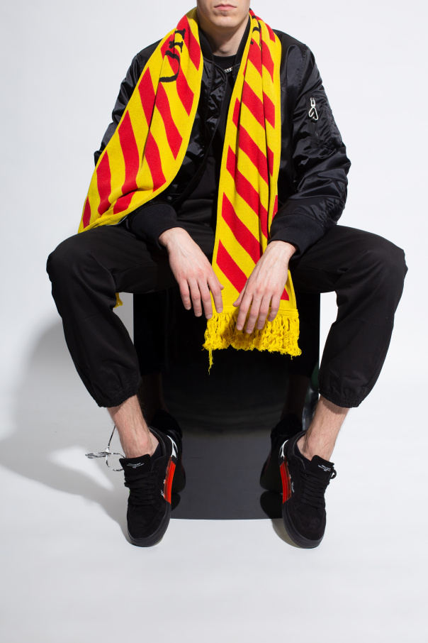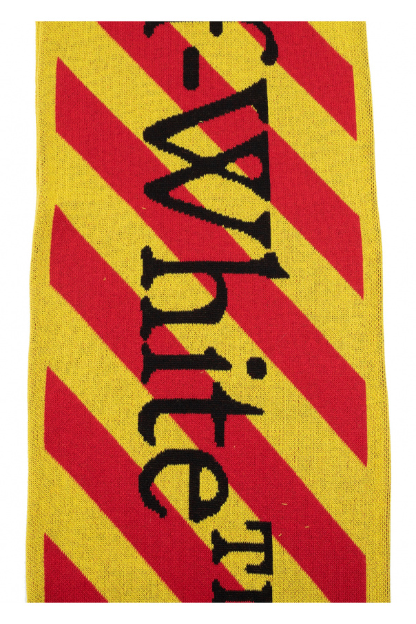 Yellow and red reversible scarf from Off-White. Embroidered with the brand's logo in black, this item features two fringed borders.
