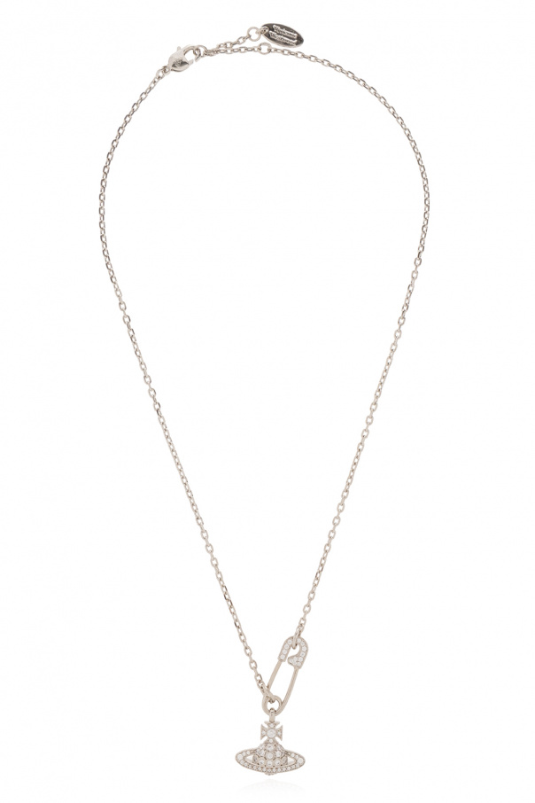 Silver-tone ‘Lucrece’ necklace from Vivienne Westwood. Made of brass, this item secures with a safety-pin and showcases a pendant with a glistening logo.