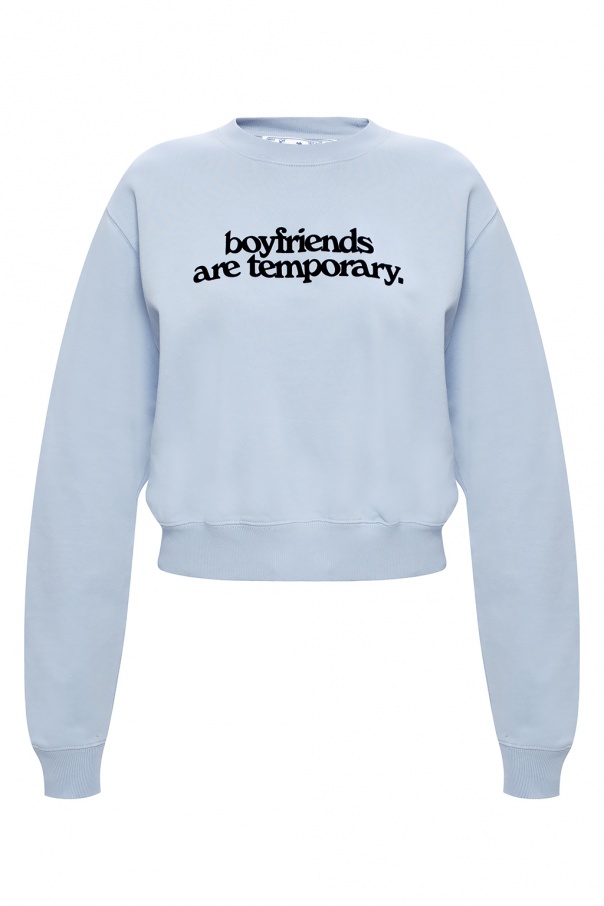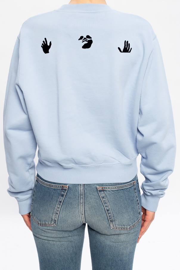 Light blue sweatshirt from Off-White. Made of cotton, this round neck design features lettering across the front, black logo with a velvet finish at the back as well as ribbed trims.