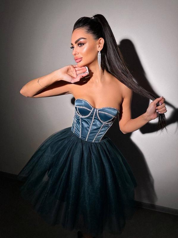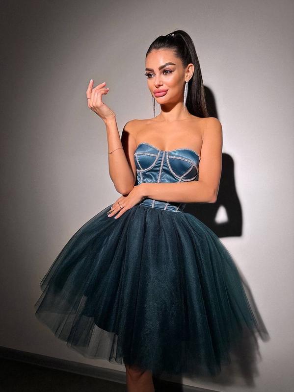 Комплект: корсет, декорированный стразами + пышная фатиновая юбка