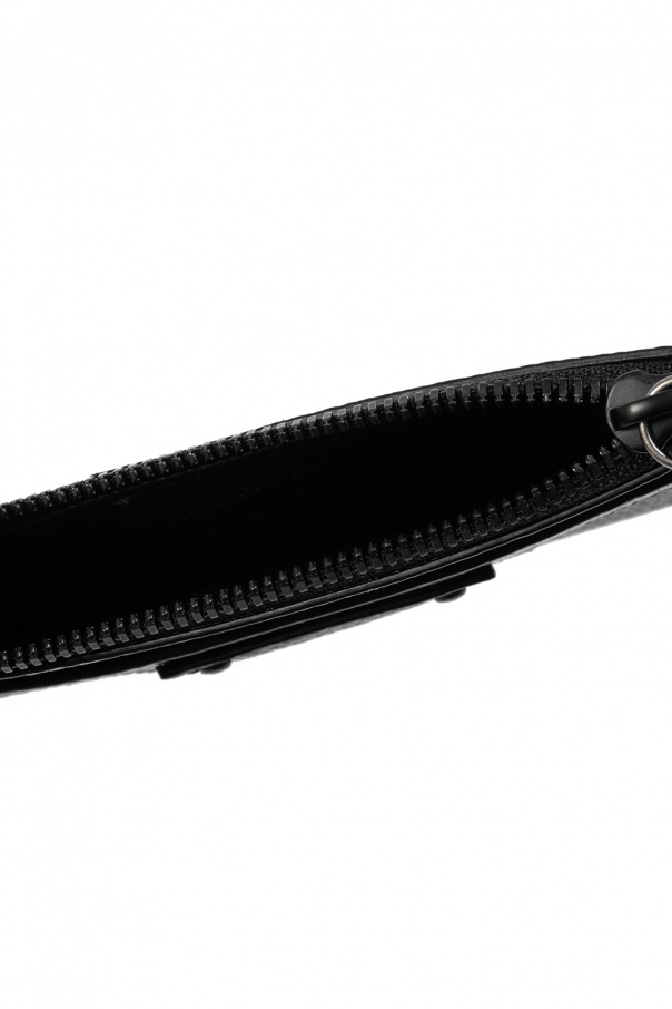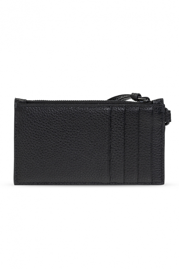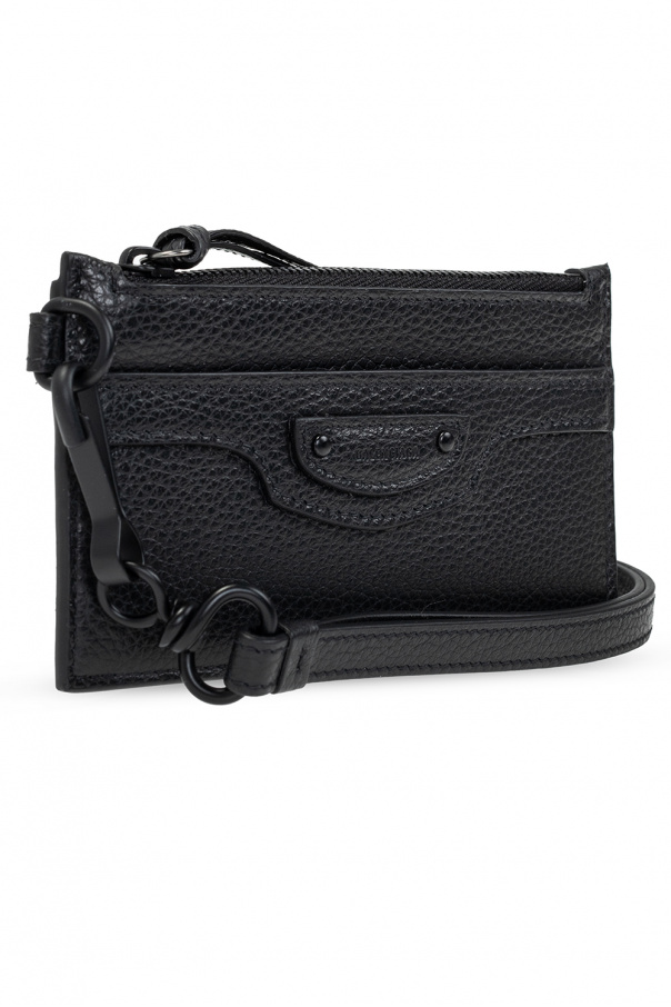 Black wallet from Balenciaga. Made of grainy calf leather, this item showcases an embossed logo, a slip pocket on the front, four card slots at the back, silver-tone metal hardware and a coin pocket inside.