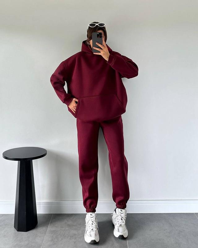 Матеріал:Фліс ,Тип костюму:З кофтою , З худі ,Призначення:Для бігу , Для залу , Для повсякденного носіння ,Вид костюму:Двійка ,Сезон:Зима , Осінь , Весна , Демісезон ,Принт:Без принту ,Особливості моделі:З капюшоном , З кишенями , Оверсайз ,Опис