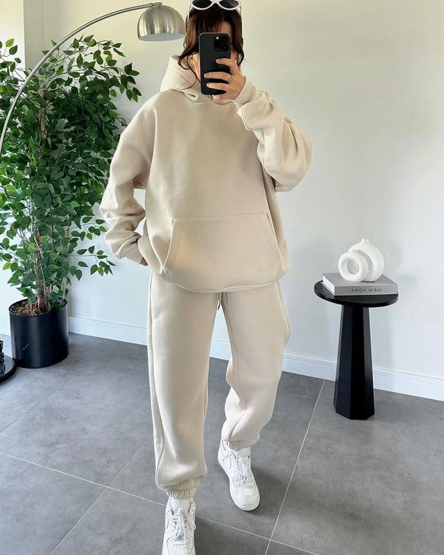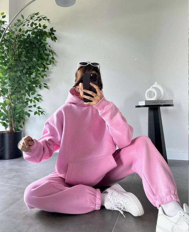 Матеріал:Фліс ,Тип костюму:З кофтою , З худі ,Призначення:Для бігу , Для залу , Для повсякденного носіння ,Вид костюму:Двійка ,Сезон:Зима , Осінь , Весна , Демісезон ,Принт:Без принту ,Особливості моделі:З капюшоном , З кишенями , Оверсайз , - Shipping