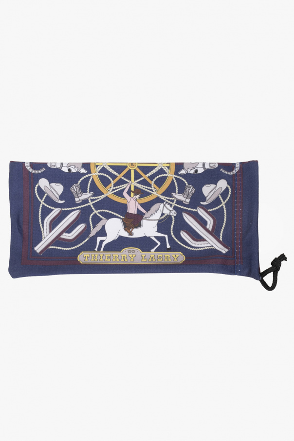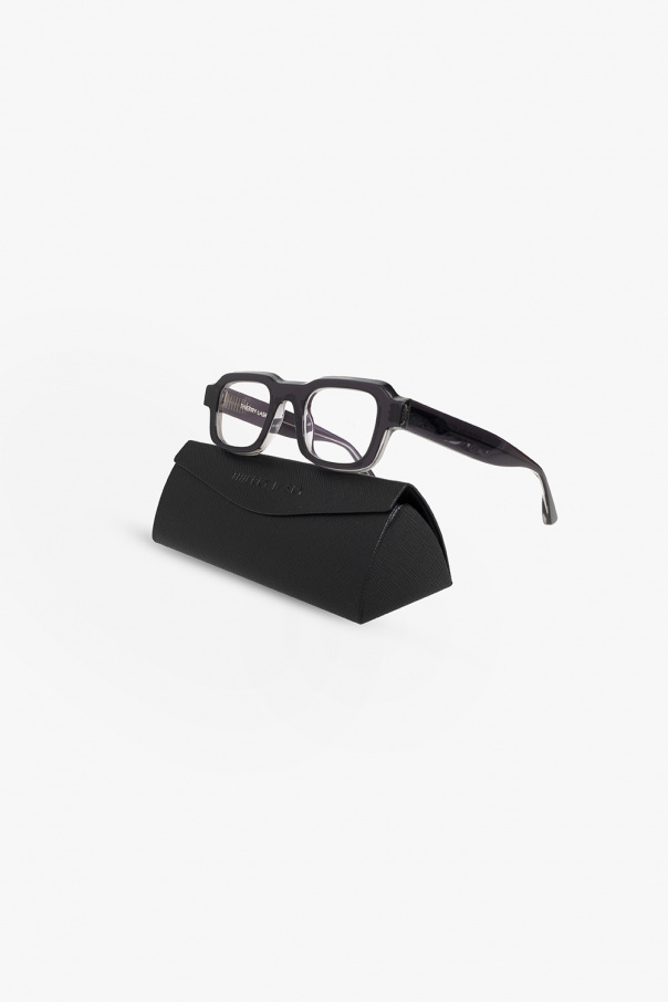 Black, transparent ‘Kultury’ optical glasses from Thierry Lasry. Handcrafted in Italy from authentic Italian acetate, this pair has retro-futuristic rectangular frames complemented by an edgy, beveled browline and clear lenses with 100% UV protection. Comes with a case.