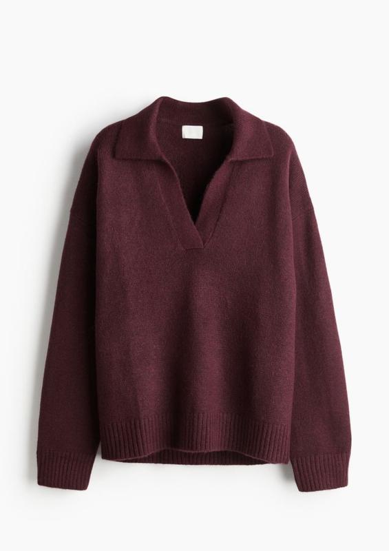 В наличии в сером или бордовом цветах - размеры S, M❣️Объемный свитер поло H&M, из мягкого трикотажа, с V-образным вырезом. Плечевой шов опущен, рукава с манжетой. В красивом бордовом цвете♥️