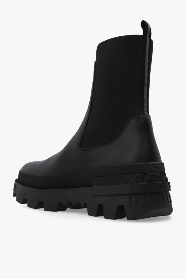 Black ankle boots from Moncler. Crafted from leather, this pair features elastic side panels, embossed logo and black rubber sole.