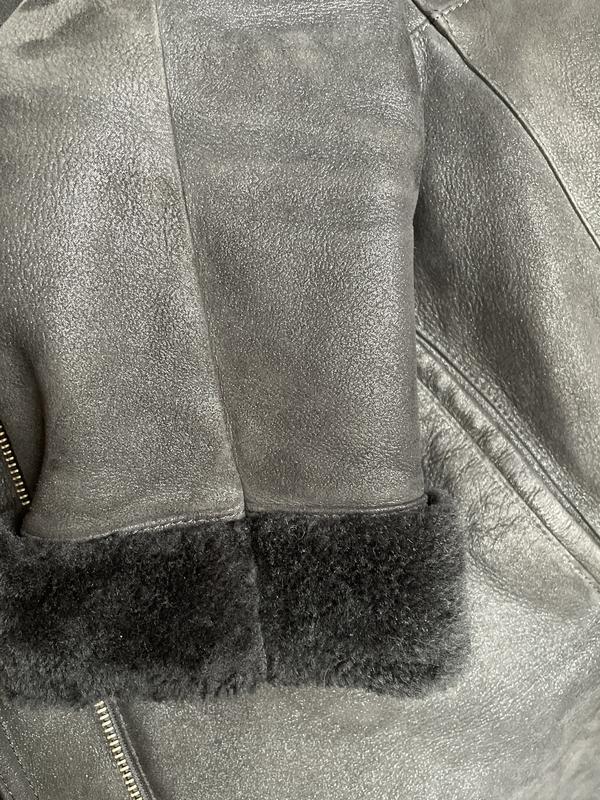 Натуральна жіноча дублянка, чорного кольору, у відмінному стані, на блискавці з капюшоном. Каптур не знімається. після хімчистки. Має легке блискуче напилення.