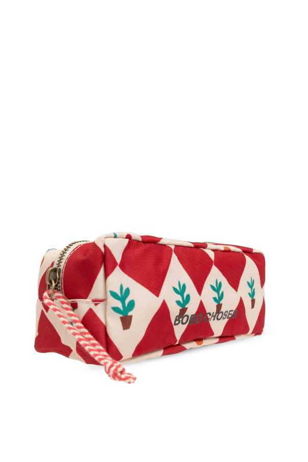 Introducing the Bobo Choses Pencil Case, an epitome of playful elegance and practical design. This rectangular accessory showcases a vibrant red-and-white diamond pattern, reminiscent of a classic checkerboard. Adorning the red diamonds are whimsical graphics of small plants, oranges, and stars, infusing a sense of youthful exuberance. Crafted from a fabric blend of cotton, viscose, and elastane, the pencil case not only exudes durability but also offers a soft touch. The front proudly displays the "BOBO CHOSES" logo in a striking black font, adding a touch of sophistication to its playful design. Functionality meets finesse with a gold-tone zipper, accentuated by a red-and-white cord for ease of use. Inside, the case is lined with a light-hued fabric, featuring a branded label that subtly underscores its authenticity and craftsmanship. Why Purchase This Product? Distinctive Design: Eye-catching red-and-white diamond pattern with charming graphics. High-Quality Materials: Made from a durable and soft blend of cotton, viscose, and elastane. Functional Elegance: Gold-tone zipper with an easy-to-use cord pull. Authenticity: Features the iconic "BOBO CHOSES" logo and branded interior label.