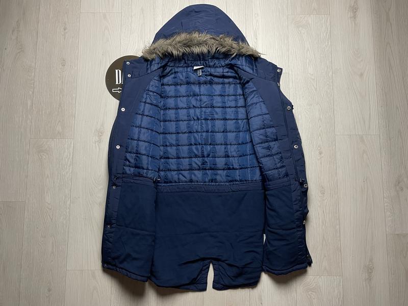 Гарнюча тепла парка синього кольору, рефлективний логотип на грудях, кишені на замках, класна річ👍🏻