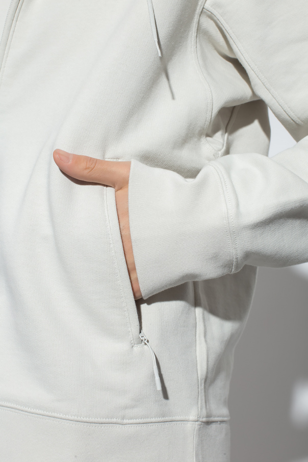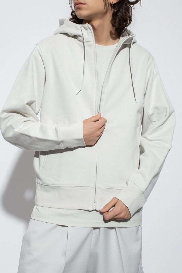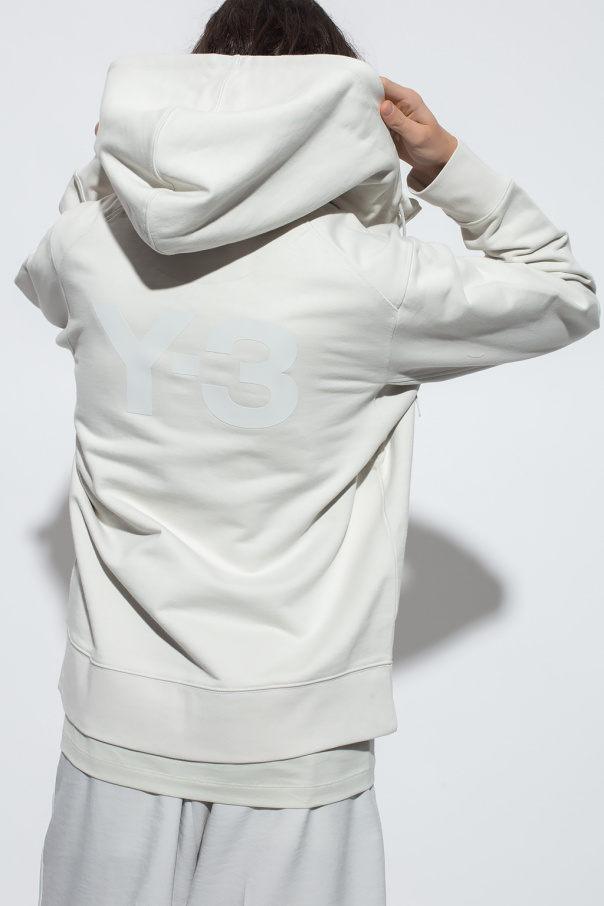 Light grey hoodie from Y-3 Yohji Yamamoto. Made of cotton, this garment features a zip fastening, logo print at the back, two zip pockets, drawstring hood and ribbed trims at the hem and cuffs.