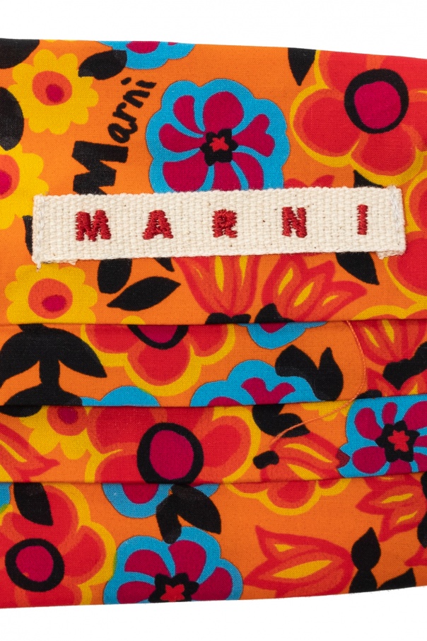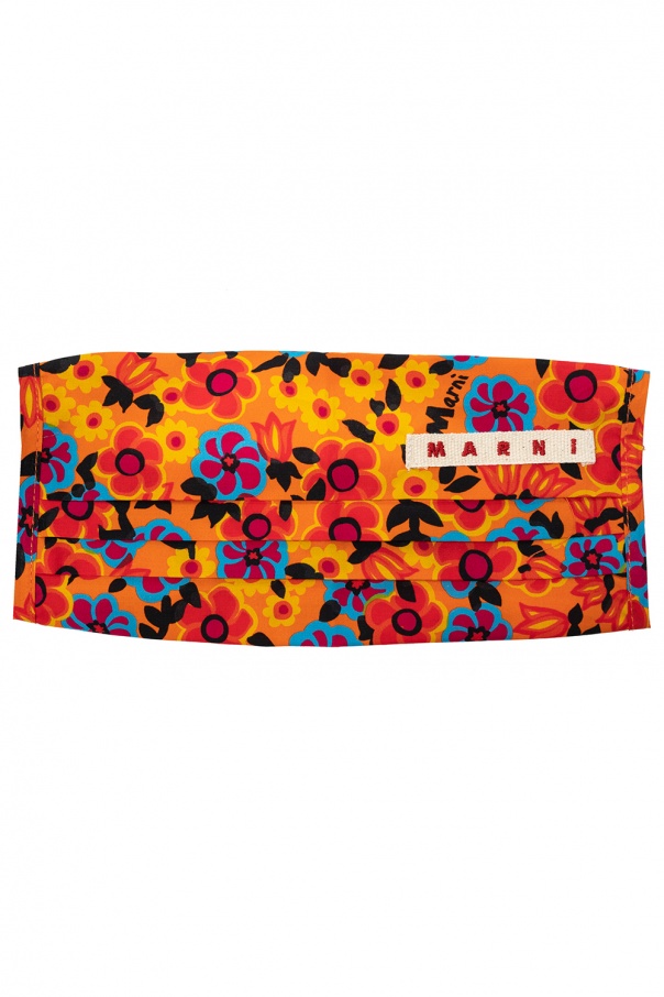 Orange mask from Marni. Made of cotton, this item features a colorful floral print and logo patch in white and red.