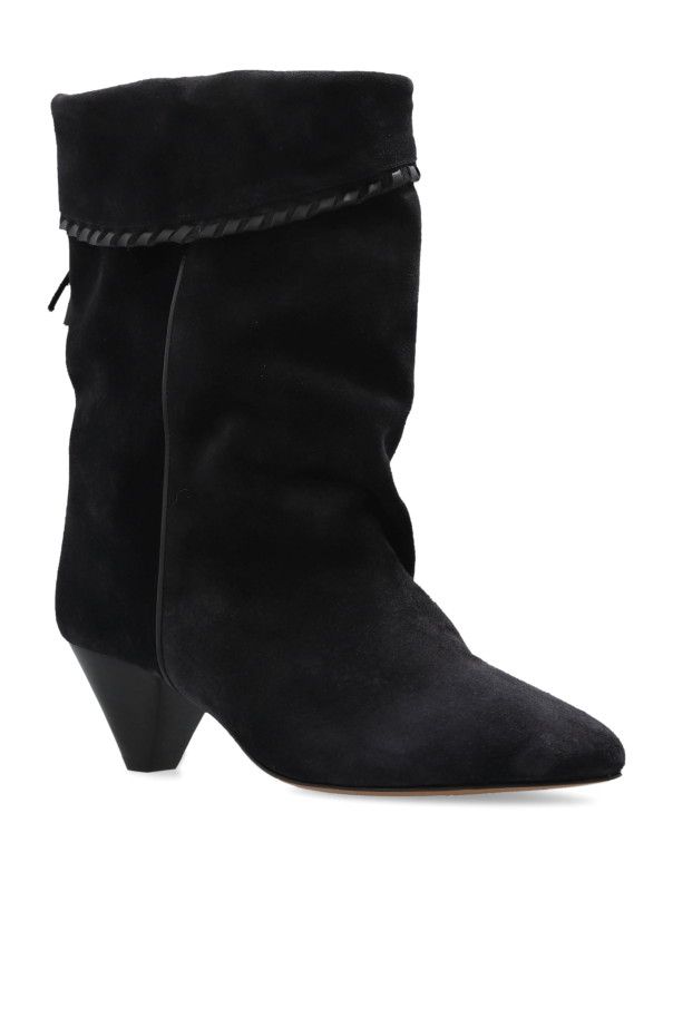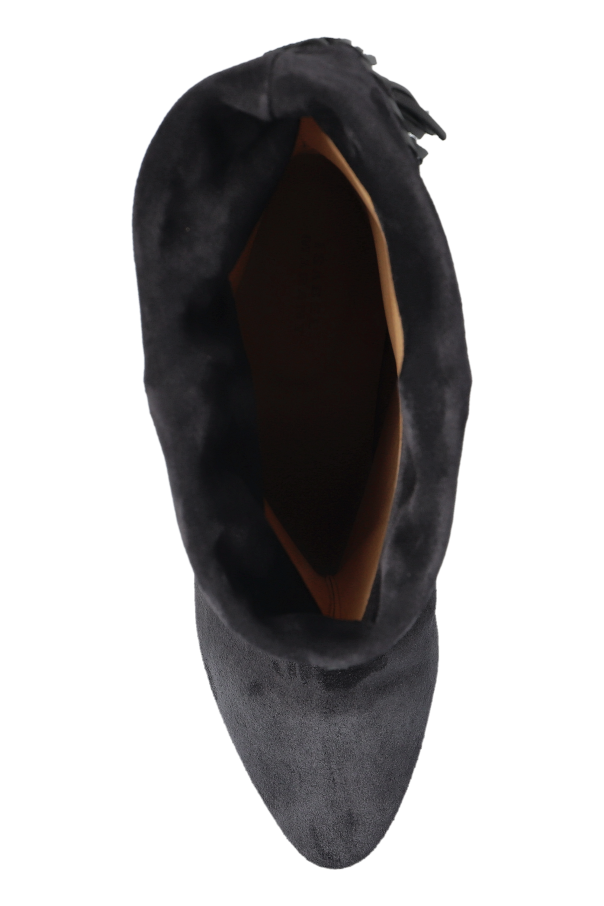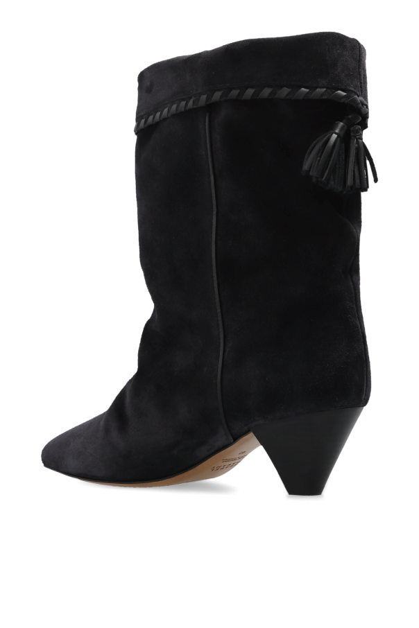 Introducing the exquisite Dalby Boots by the renowned designer Isabel Marant, a luminary in French fashion. These boots epitomize timeless elegance and versatility, seamlessly blending with any ensemble. Crafted from the finest leather, both inside and out, the Dalby boots exude a luxurious aura. The classic design features a graceful rounded toe and a knee-high silhouette that promises a chic and sophisticated look. The medium-height, conical heel adds a touch of elegance while ensuring comfort for prolonged wear. A braided strap along the top edge and an ornamental tassel at the back provide unique details that set these boots apart. The dominant black color enhances their universal appeal, making them a perfect addition to any wardrobe, suitable for various occasions. Why choose this product? Expertly crafted from premium leather for ultimate luxury. Timeless black hue for effortless styling. Unique braided strap and tassel for a distinctive touch. Designed by Isabel Marant, celebrated for her sport-chic elegance.