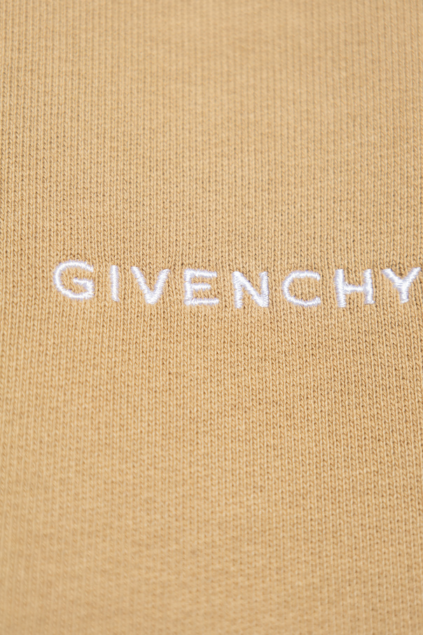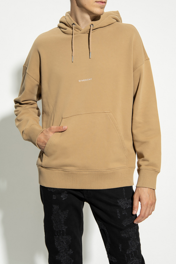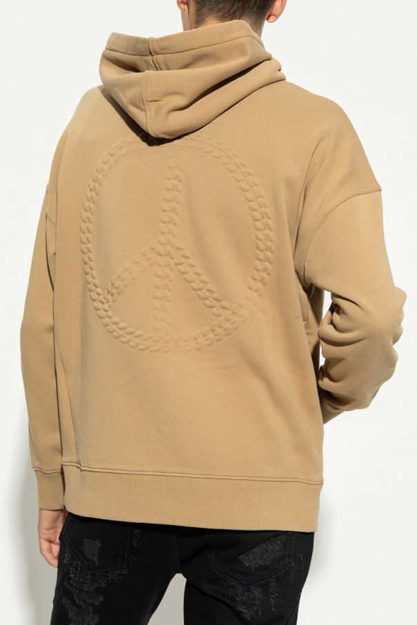 Beige hoodie from Givenchy. Made of cotton, this garment features a white logo embroidery, slip pocket, raised peace sign, drawstring and ribbed trims at the hem and cuffs.
