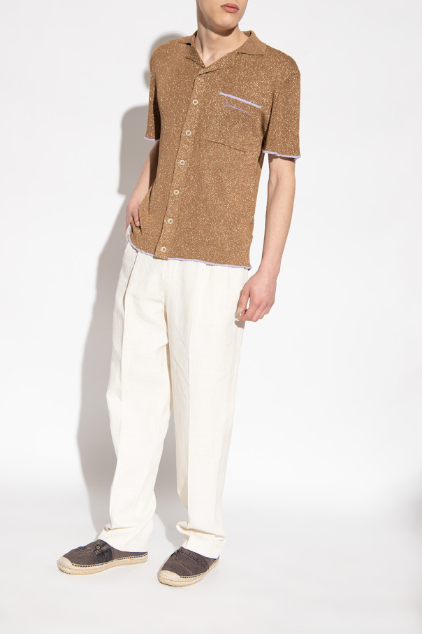 Brown and navy denim espadrilles from Dolce & Gabbana. Resting on a beige rubber sole trimmed with jute, this pair features a jeans motif.