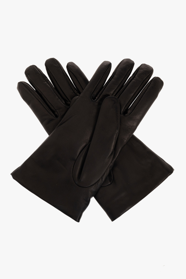 Black gloves from Versace. Made of lamb leather and lined with cashmere, this pair features silver-tone Medusa face hardware.