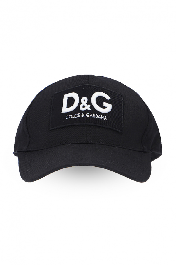 Black baseball cap from Dolce & Gabbana. Crafted from cotton, this item showcases a logo-embroidered patch on the front and a buckle adjuster on the back.