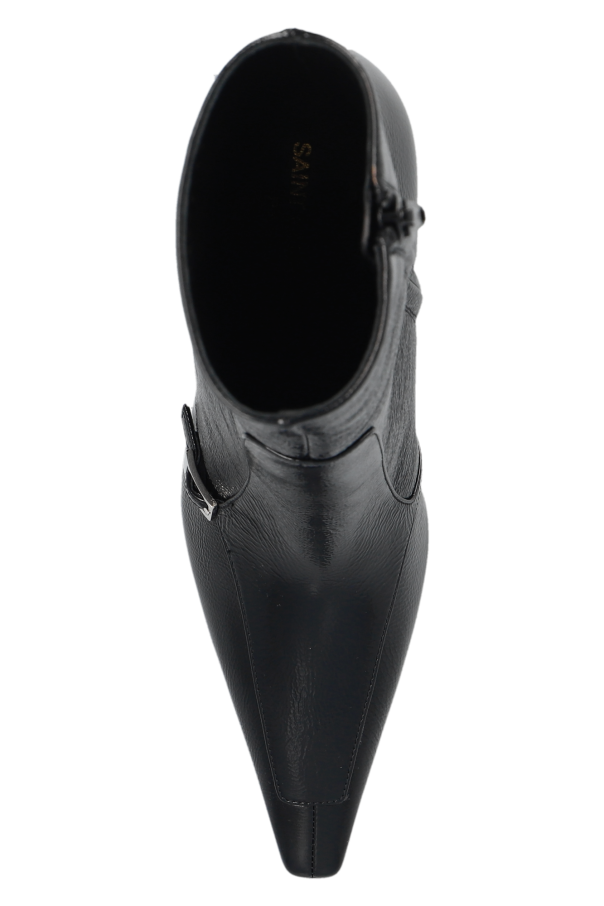 Black ‘Aston’ ankle boots from Saint Laurent. Made of aged leather with a tapered toe, this model sits on a black leather sole and features a buckle strap on the side.