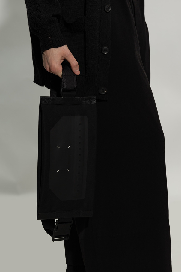 Black belt bag from Maison Margiela. Embellished with brand's signature white four stitches moniker, this design features an adjustable strap and black metal hardware.