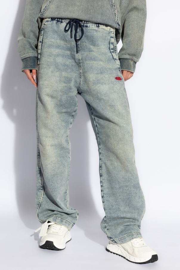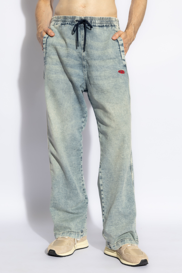 Introducing the D-MARTIANS trousers by renowned designer Diesel, a masterpiece that embodies the epitome of casual luxury and timeless style. Crafted from a premium blend of 98% Cotton and 2% Elastane, these trousers offer unmatched comfort and durability, ensuring they remain a staple in your wardrobe for years to come. The trousers boast a light blue hue, accentuated with a vintage stone washed effect and deliberate distressing, offering a nod to classic denim aesthetics while presenting a modern twist. The relaxed fit and straight-leg design, slightly tapered towards the bottom, ensure a flattering silhouette for all body types. The inclusion of an elastic waistband with black drawstring allows for customizable fitting, enhancing the overall comfort and wearability of the trousers. Distinctive features such as the vibrant red designer logo near the waistband elevate the trousers from ordinary to extraordinary, marking them as a genuine Diesel creation. The intricate denim weave is visible upon closer inspection, showcasing the quality and attention to detail that Diesel is celebrated for. Why Purchase This Product? Versatile stone washed design that complements any ensemble. High-quality blend of materials ensuring longevity and ease of care. Adjustable fit for maximum comfort and a personalized silhouette. Signature Diesel logo as a testament to designer quality and authenticity.