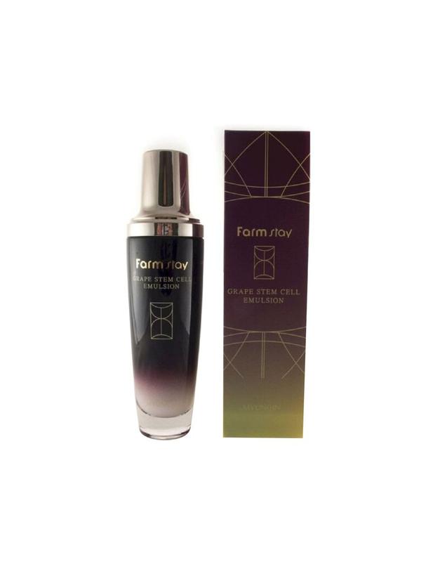 В эмульсии Farmstay Grape Stem Cell Emulsion, произведенной в Южной Корее, используется экстракт стволовых клеток винограда, способствующий регенерации кожи и повышающий ее эластичность. Ключевые ингредиенты: