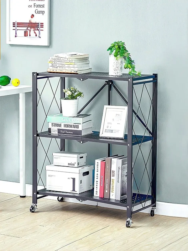 Этажерка складная трехуровневая с вращающимися колесами 3F, Напольный органайзер для хранения вещей в доме, Стеллаж универсальный
