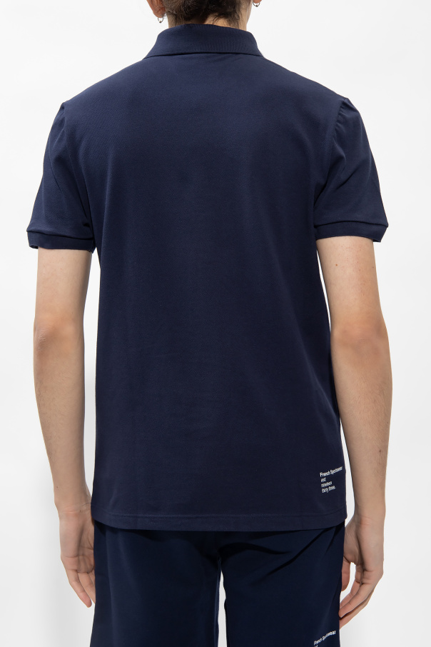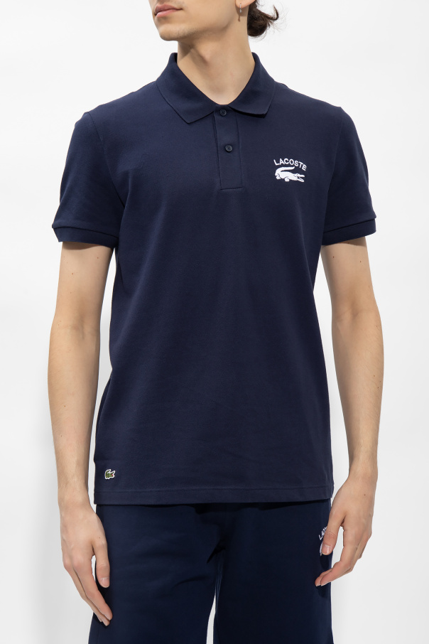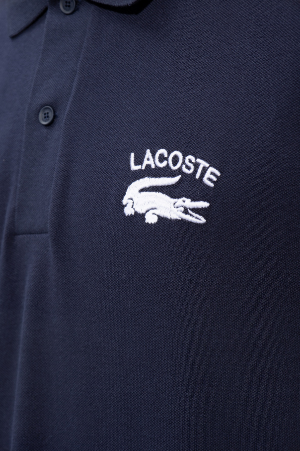 Navy polo shirt from Lacoste. Made of cotton, this short sleeve design features buttons, a logo pattern and ribbed trims at the collar and cuffs.