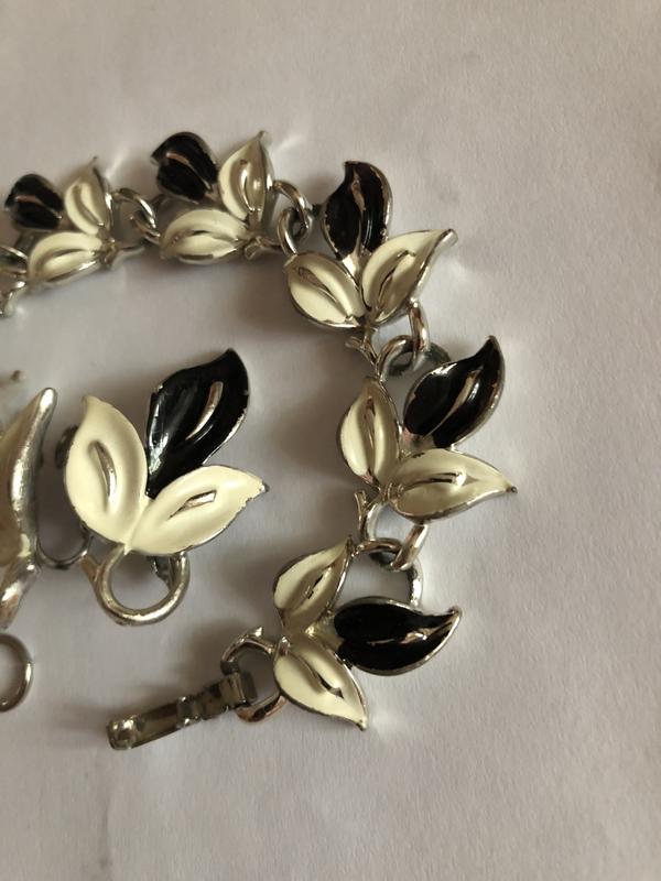 Набор в красивом винтажном состоянии, за исключением на обороте есть потеря в нескольких местах покрытия, чередования белой и черной эмали, браслет 17,5 см