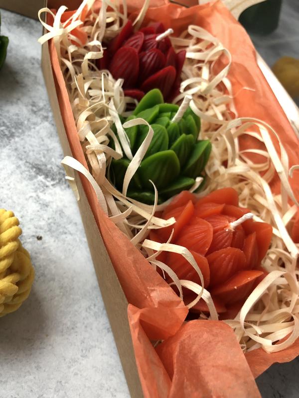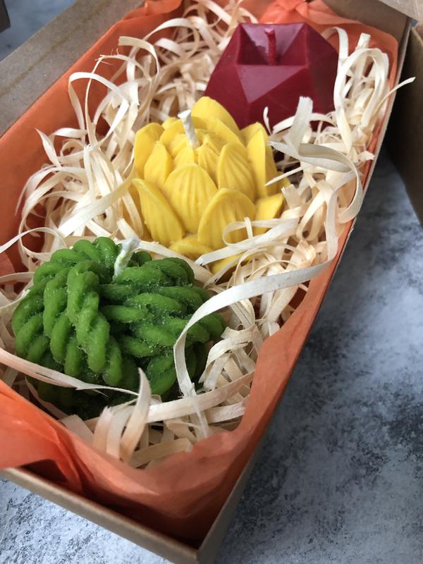 Зроблено в Україні?:Виробництво ,Тип:Набори свічок ,Матеріал свічки:Пальмовий віск , Бджолиний віск , Соєвий віск ,Опис