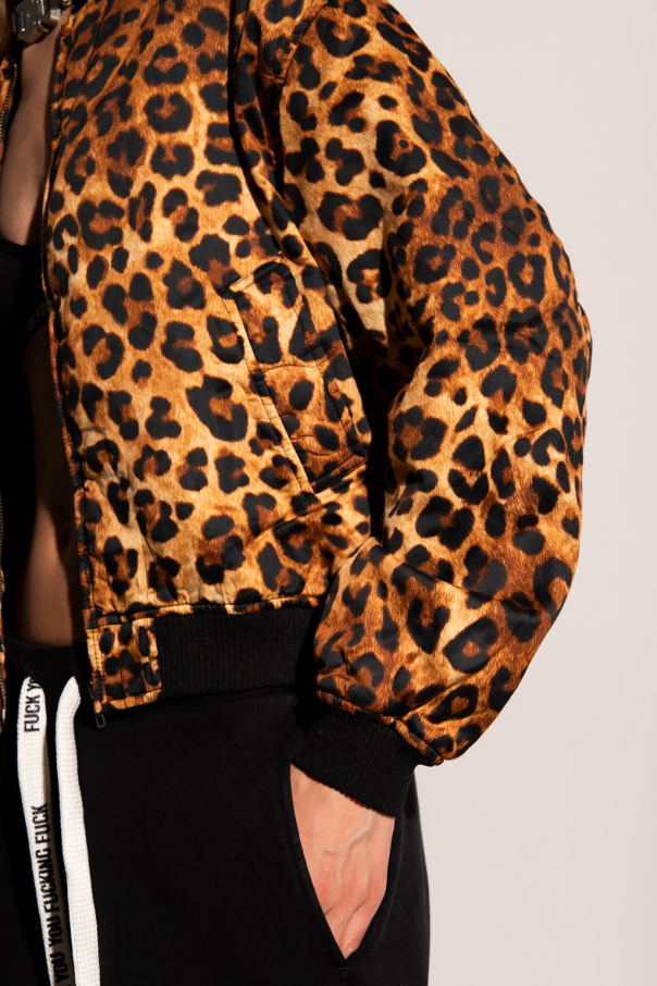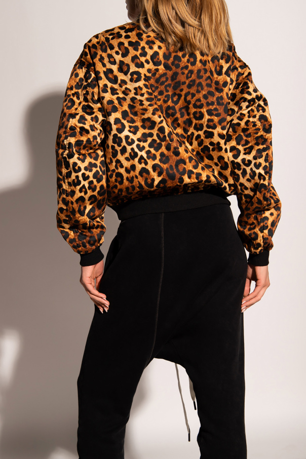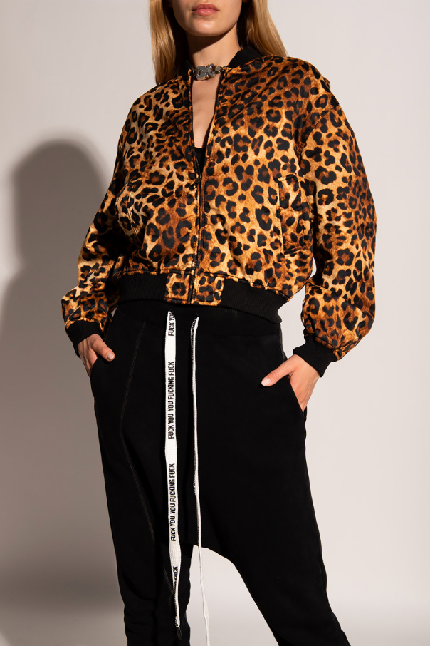 Black, beige and brown bomber jacket from R13. Fastened with a zip, this cotton-crafted design features a leopard print, two front pockets and ribbed trims at the collar, hem and cuffs.