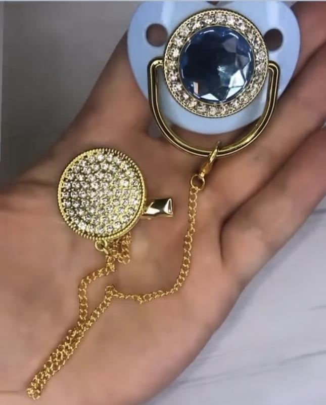 Шикарный набор : Соска со стразами + цепочка /держатель со стразами