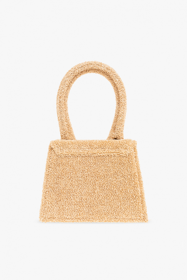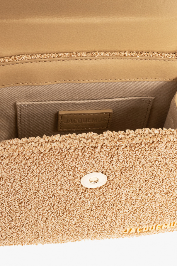 Beige ‘Le Chiquito Moyen’ shoulder bag from Jacquemus. Made of structured, curled raphia, this model fastens with a snap and is decorated with a metal logo appliqué. It is complete with a half-round handle, detachable and adjustable shoulder strap, gold-tone metal hardware and one internal compartment with one card slot.