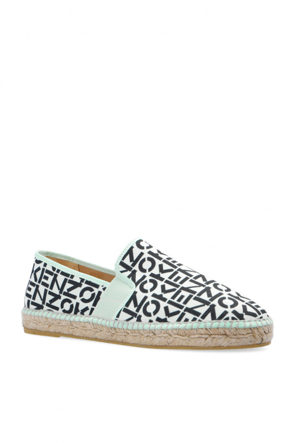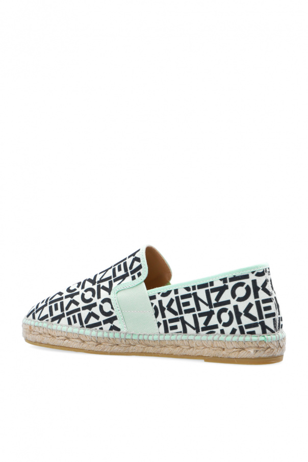 Light green, black and beige espadrilles from Kenzo. Made of cotton, this pair features a monogram pattern, elastic bands on the sides and beige rubber sole.