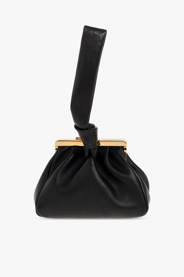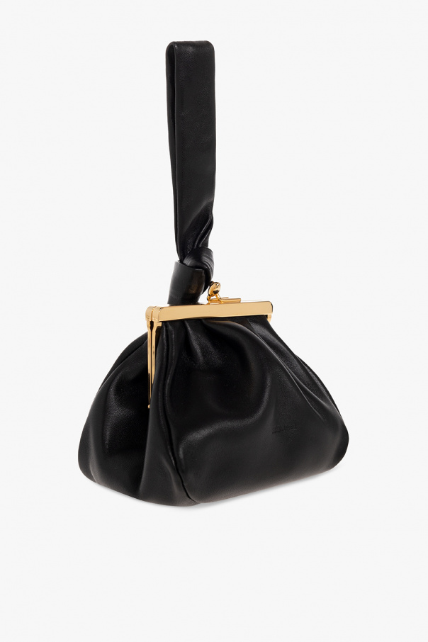 Black ‘Goji Pouch’ handbag from Jil Sander. Crafted from lamb leather, this model is complete with a snap closure, embossed logo, decorative handle, gold-tone metal hardware and one internal compartment with beige lining.