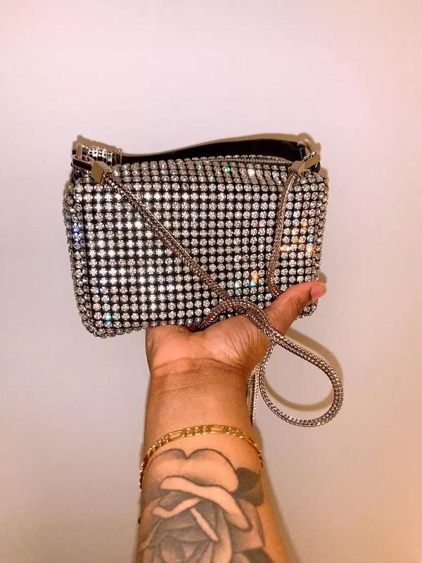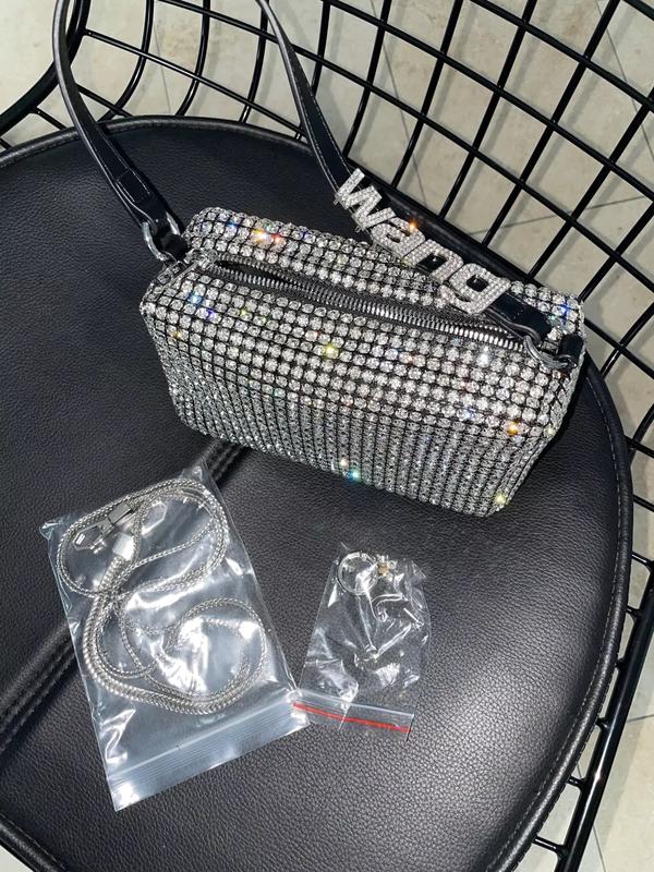 Шикарная сумка люкс качества из страз! В стиле известного бренда Wang невероятный блеск и идеальное качество! Очень эффектная, подчеркнет ваш сияющий образ! Размер 17*10 В комплекте 2 ремешка: 1. Короткий (на сумке) 2. Цепочка. Поверьте, эта сумочка под известный бренд придаст блеск и стиль любому Вашему образу! Из всех вопросов обратитесь. В жизни лучше чем на фото, Вы точно останетесь довольны качеством и выбором! ОГРАНИЧНОЕ количество.