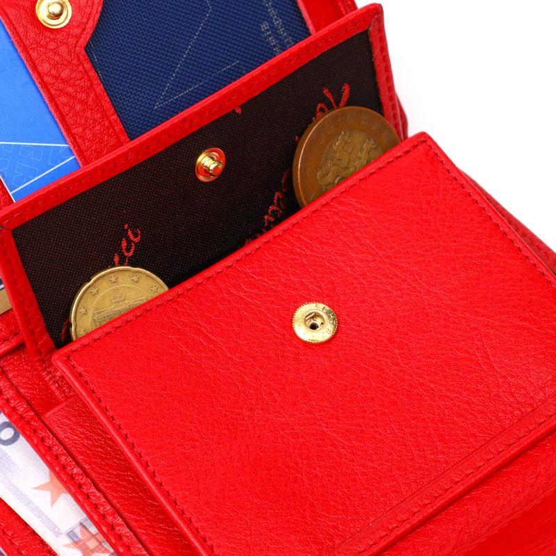 фурнітура. Закривається гаманець у три складання на кнопку.Стан: НовийКолір:- Червоний
