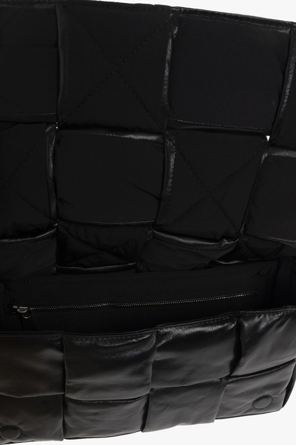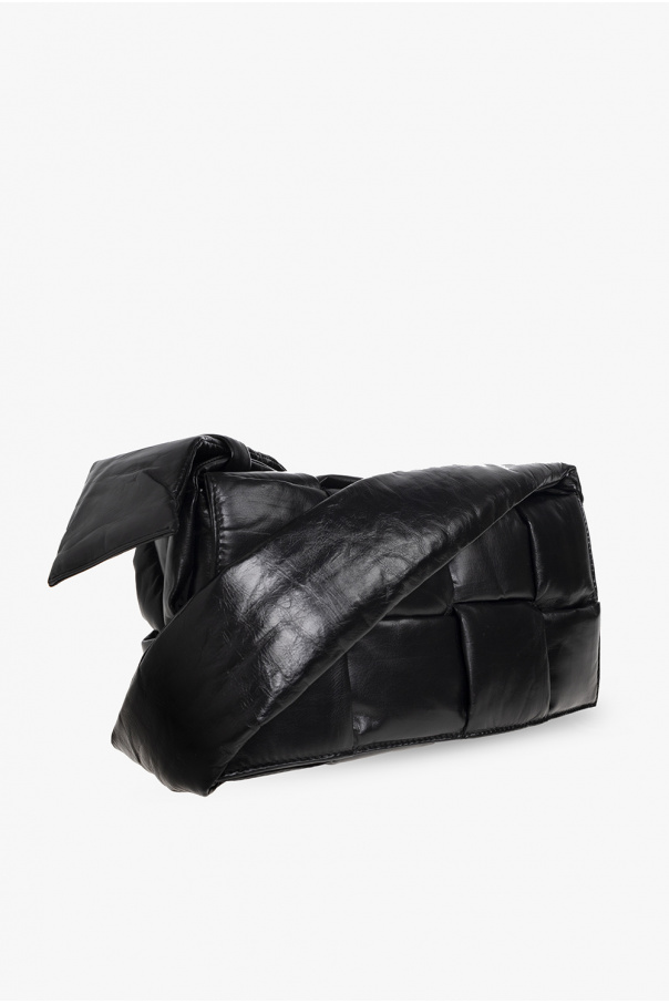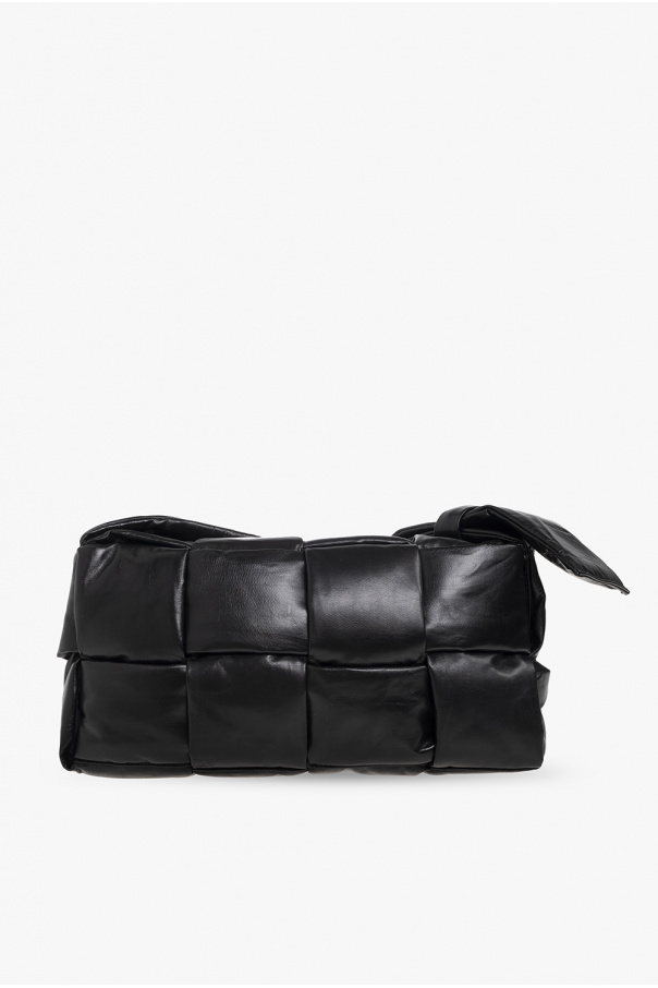 Black ‘Cassette Medium’ shoulder bag from Bottega Veneta. Made of leather, this model features the signature Intreccio weave, magnetic fastenings, adjustable shoulder strap and one internal compartment with one zip pocket.