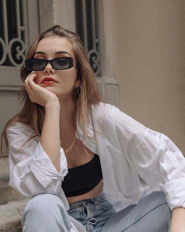 Очки женские солнцезащитные, прямоугольные в стиле Balenciaga.