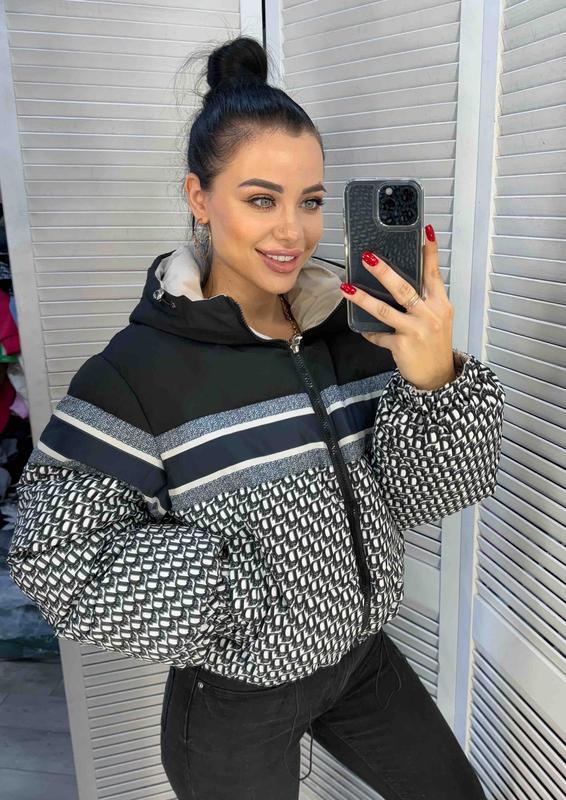 Довжина виробу:Короткі ,Особливості моделі:З капюшоном , Двосторонні , З кишенями , На змійці ,Сезон:Зима , Осінь , Весна , Демісезон ,Утеплювач:Холлофайбер ,Принт:Абстракція , Геометричний ,Стиль:Повсякденний ,Опис