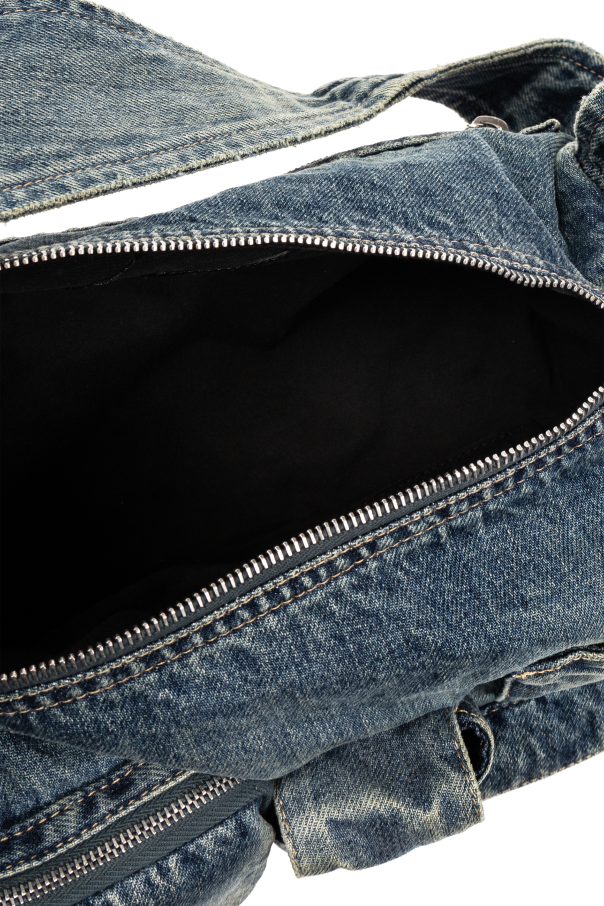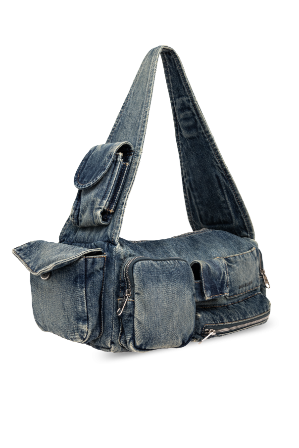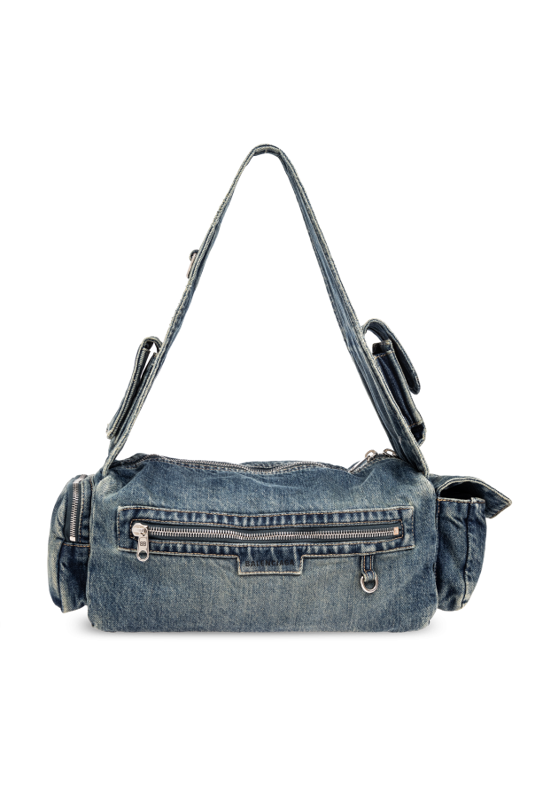 Introducing the Balenciaga \'Superbusy S\' shoulder bag, a testament to eco-conscious fashion and artful design. Crafted from an assemblage of denim fabrics in varying shades and textures, this piece not only embraces the sustainable ethos through its recycled denim construction but also showcases a unique, vintage appeal. The harmonious blend of different denim fragments creates a visually striking pattern, accented by the characteristic denim stitches and deliberate distressing for a casually worn look. The \'Superbusy S\' boasts a practical, elongated shape with multiple front pockets sealed with zippers, enhancing its functionality without compromising style. Silver-toned metal hardware, including zippers and clasps, offers a sleek contrast against the blue denim, while the designer\'s logo, prominently displayed on one of the front pockets, signifies the bag\'s exclusive lineage. A dark-hued lining envelops the interior, ensuring your belongings are cushioned in luxury. With an adjustable strap that allows for a tailored fit, this shoulder bag is as versatile as it is stylish. Whether worn across the body or slung over the shoulder, it adapts seamlessly to your individual style and needs. Why Purchase the \'Superbusy S\' Shoulder Bag? Eco-friendly design with a vintage charm, utilizing recycled denim materials. Artful construction with multiple pockets for practical, organized storage. Exclusive designer appeal with Balenciaga\'s logo and high-quality metal accents. Adjustable strap for a custom fit, ensuring comfort and versatility.