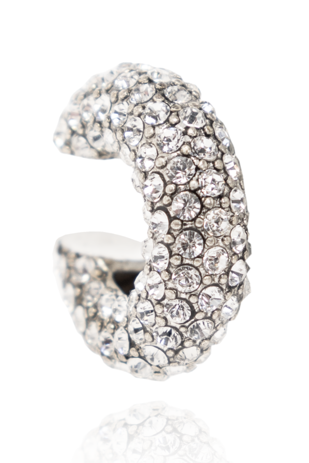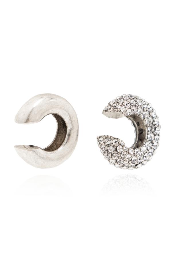 Two silver-tone ear cuffs from AllSaints. Made of brass. One is encrusted with glistening crystals.