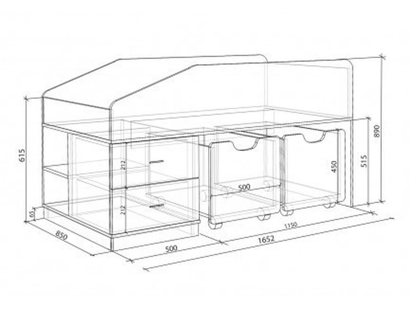 спальное место и вместительные ящики для детских вещей.Двухъярусная кровать чердак ДКЧ 670
