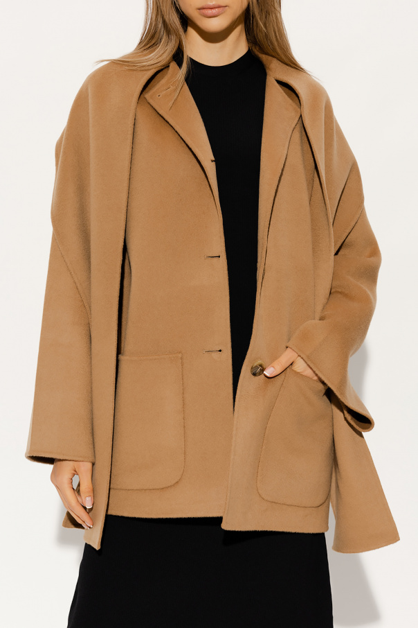 Beige coat from Toteme. Crafted from wool with the RWS certificate, this style features a relaxed, cropped silhouette, front button fastenings, a distinctive collar, two slip pockets and long sleeves.