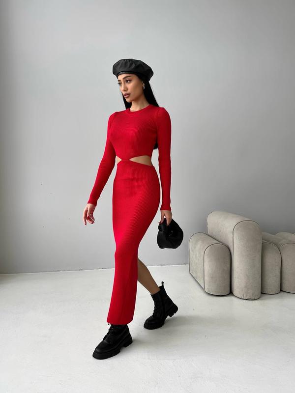 Силуетна сукня з дуже якісного бавовняного трикотажу з вирізами на боках - сміливий акцент стилю. Образ створює загадковість, а ваша фігура стане витвором мистецтва.
