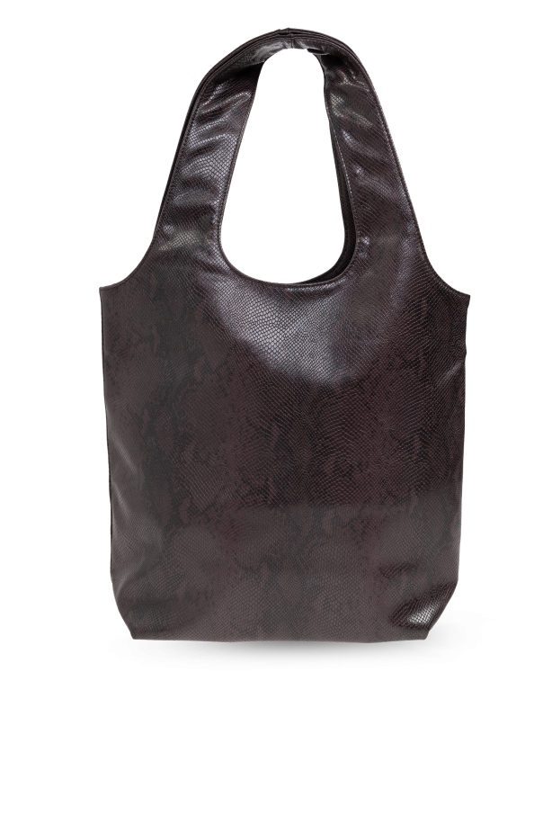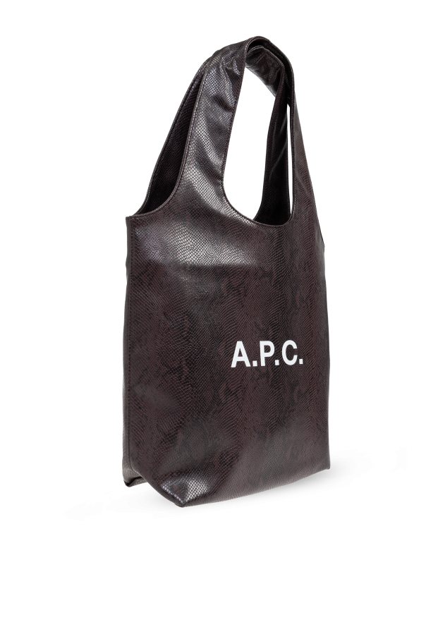 Introducing the Ninon Small Shopper Bag by A.P.C., a paragon of minimalist elegance and functional sophistication. Crafted from high-quality faux leather, this exquisite piece boasts a rich, dark brown hue complemented by a subtle monogram pattern that echoes the luxurious essence of the design. The front is adorned with the iconic, large white letters \"A.P.C.\", serving as a bold statement of its distinguished origin. The bag\'s design is meticulously thought out, featuring a single spacious compartment, perfect for accommodating your daily essentials with ease. Its handles, fashioned from the same premium material, are designed for comfortable shoulder carry, enhancing its practicality without compromising style. The rectangular shape, with gently rounded corners at the top, adds a touch of softness to its structured silhouette, making it a versatile accessory for any ensemble. Attention to detail is evident in the seamless stitching, underscoring the craftsmanship and high-quality execution that A.P.C. is renowned for. While the interior is streamlined, offering a slip pocket for organization, it maintains a sleek and uncluttered aesthetic, ensuring that your belongings are carried in utmost style. Why Purchase This Product? Elegant design with subtle monogram pattern and distinctive A.P.C. branding High-quality faux leather construction for durability and style Spacious interior with a slip pocket for organized storage Comfortable shoulder carry, perfect for daily use Exquisite craftsmanship with attention to detail