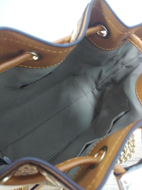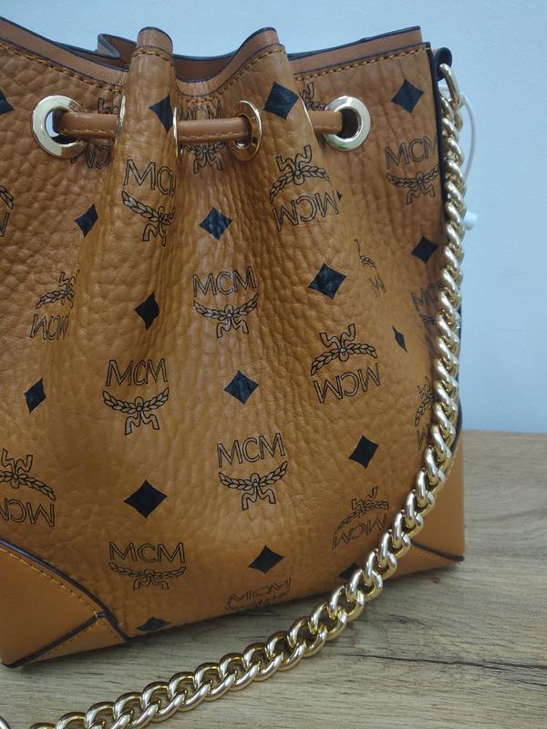 Роскошная монограмма сумка ведро среднего размера, коричнево - рыжего цвета, с массивной цепочкой, хорошо держит форму