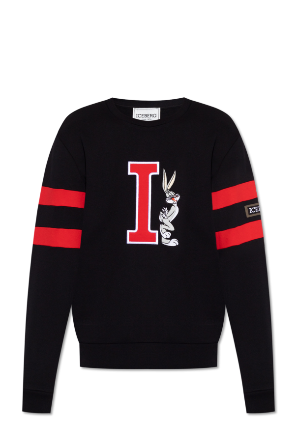 Black and red sweatshirt from Iceberg x Looney Tunes. Made of cotton, this design features an embroidered pattern, logo, round neck, long sleeves and ribbed hem.