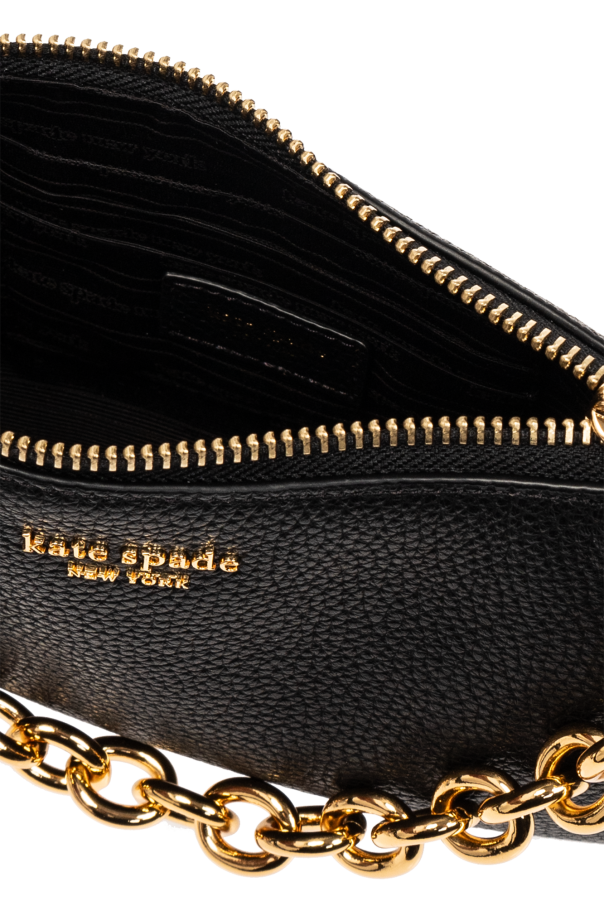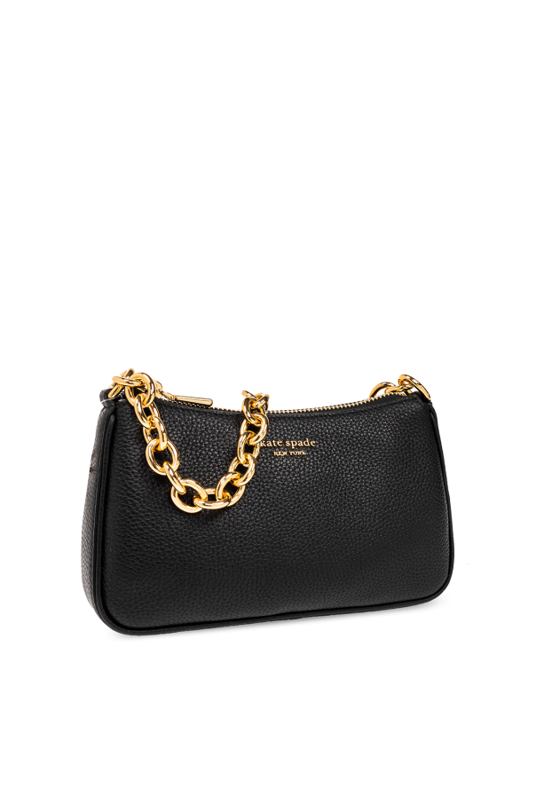 Black ‘Jolie Small’ shoulder bag from Kate Spade. Crafted from leather, this model features a metal logo detail, half-round chain handle, gold-tone metal hardware and one internal compartment with three card slots.